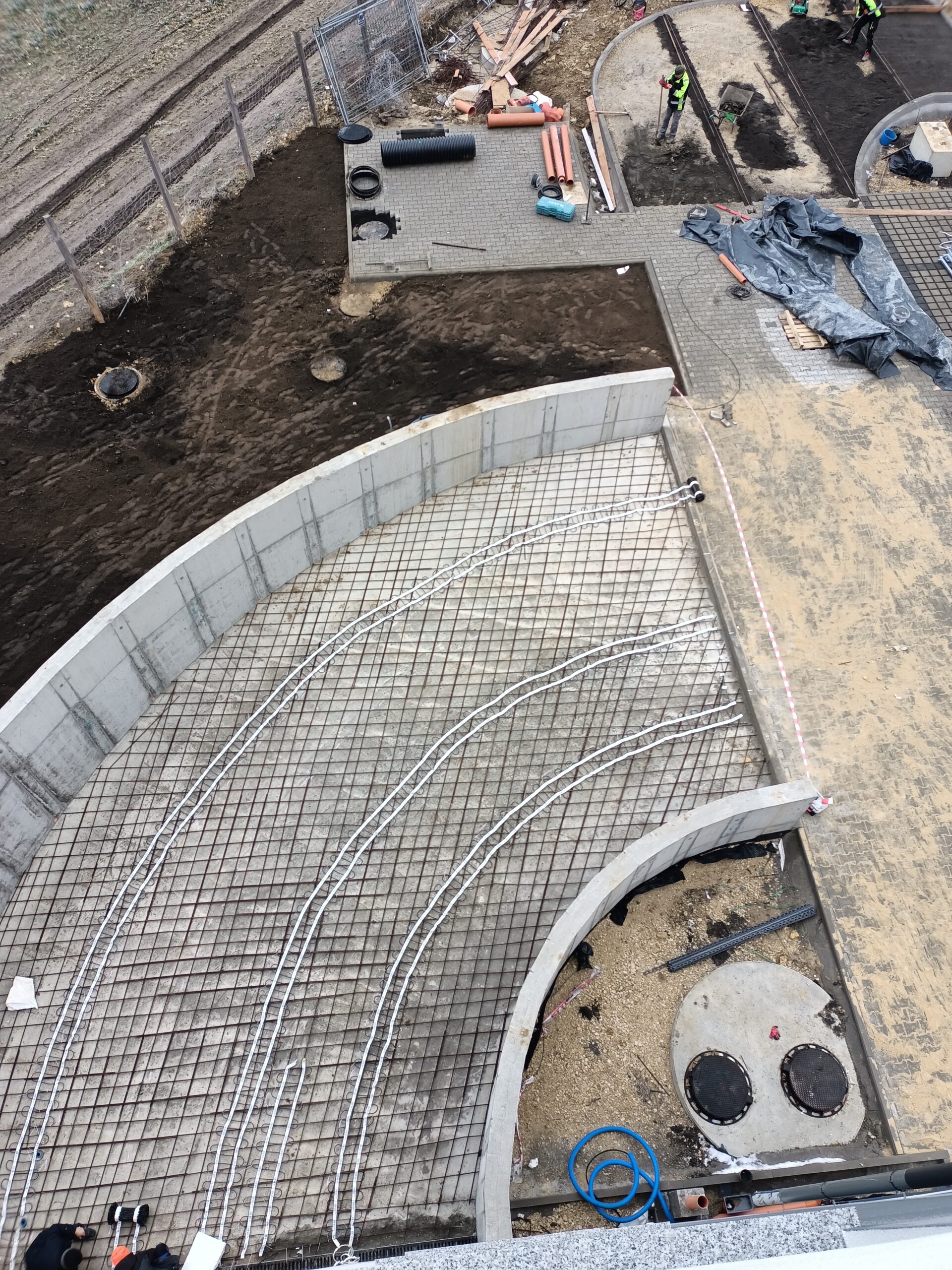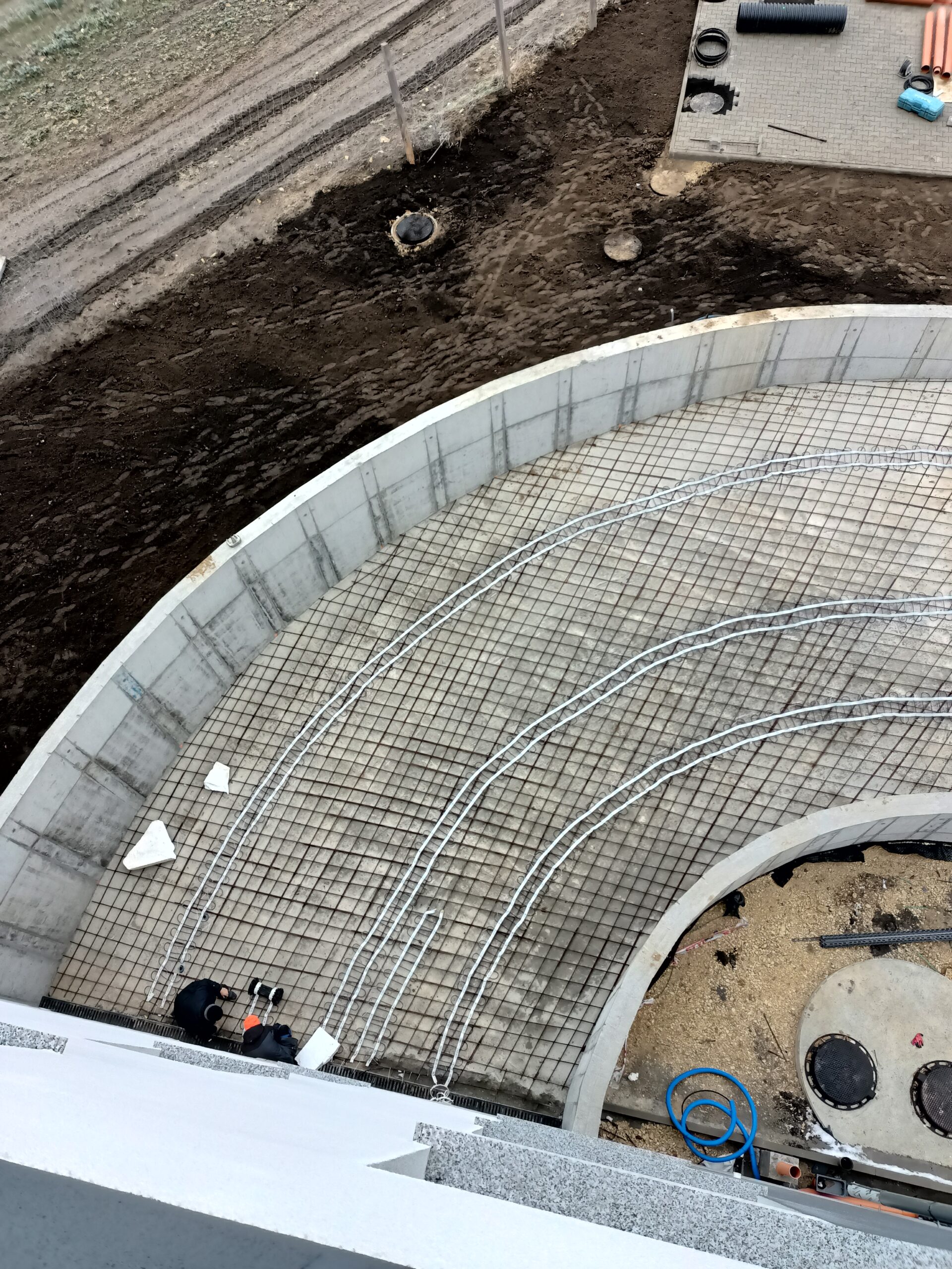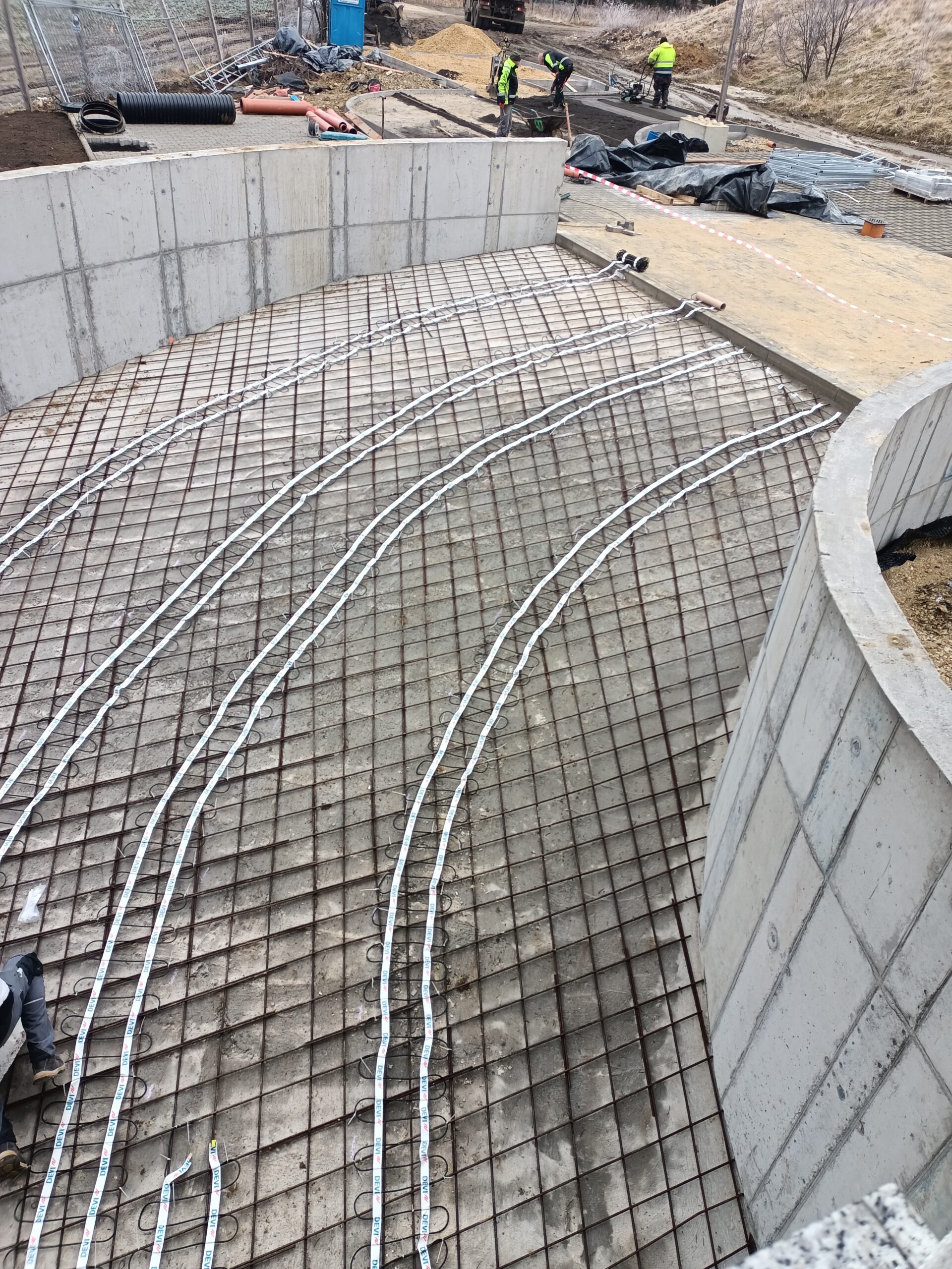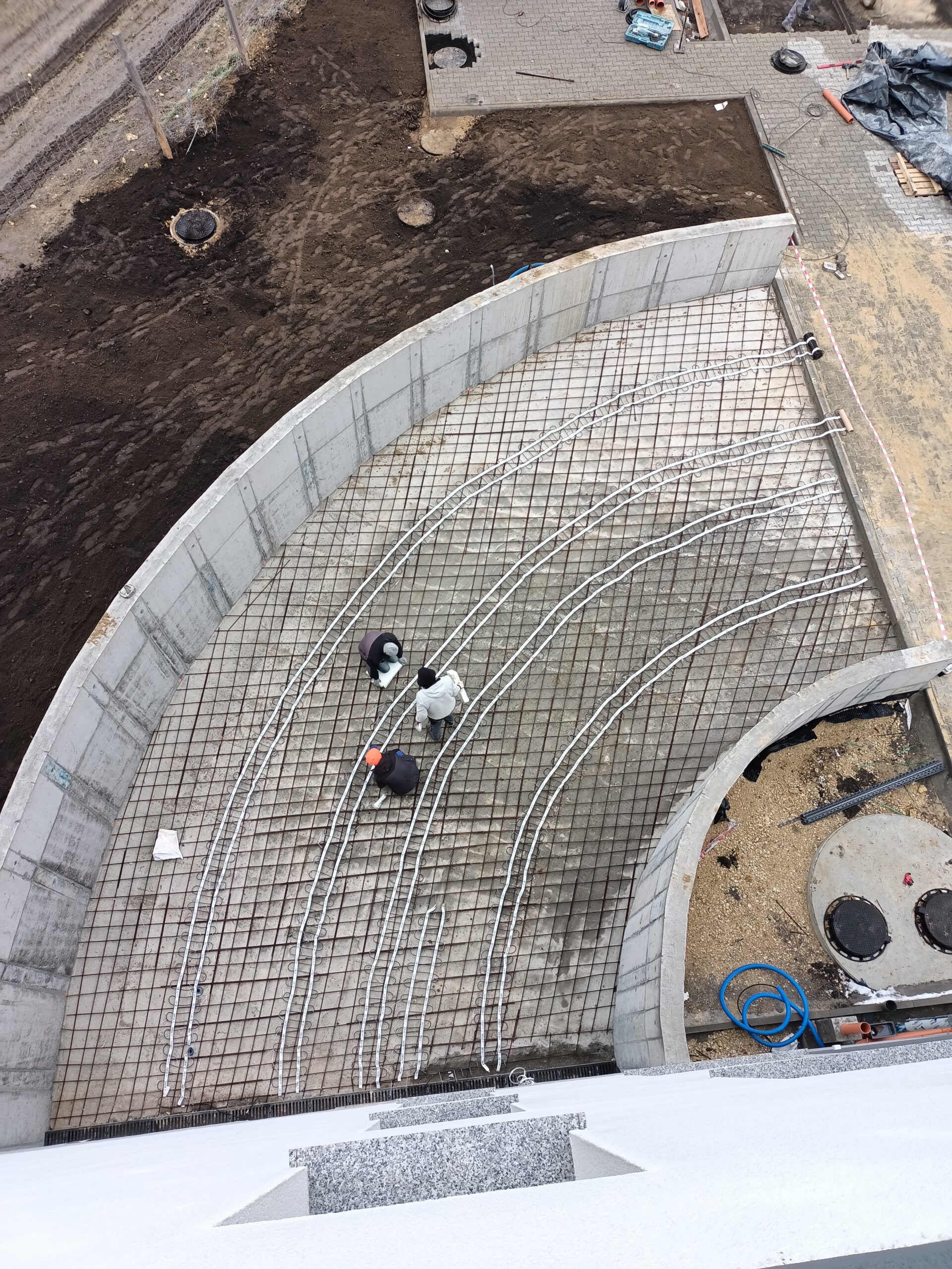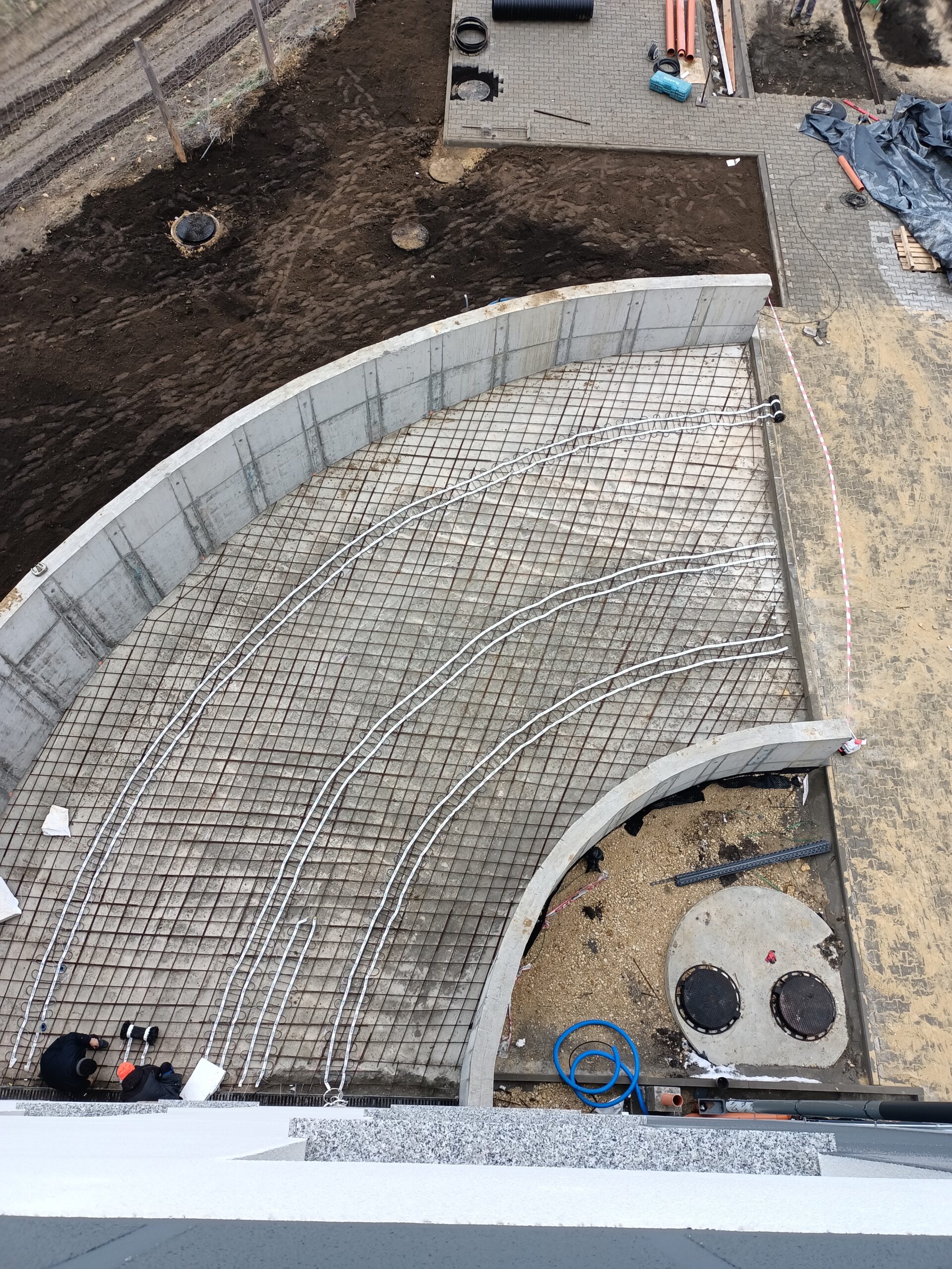 Usługa dotyczyła także podgrzewanego zimą zjazdu do parkingu podziemnego wraz z podgrzewanymi kratkami odpływowymi.